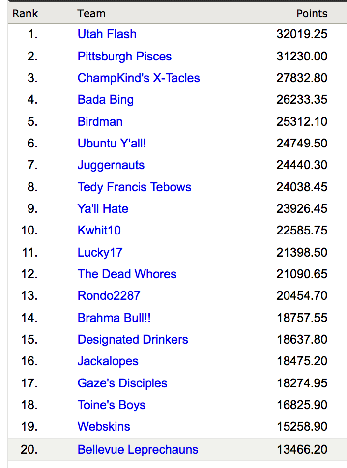 There are 200 names to choose from here ranging from snarky to goofy and everything in between. Have fun checking them out and hopefully you can find a name that. Even if injury trouble lands you near the bottom.